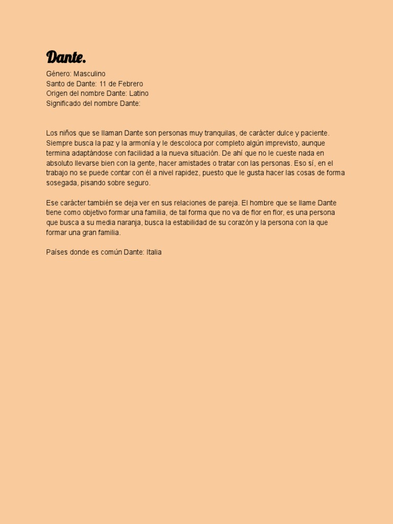 Por otro lado si el nombre de tu novio o amigo es. Pero si ha llegado a tu mente el nombre Dante es probable que desees conocer el significado del nombre Dante para convencerte en elegirlo. Un diminutivo de Durante la forma italiana de Durand que significa perdurable.